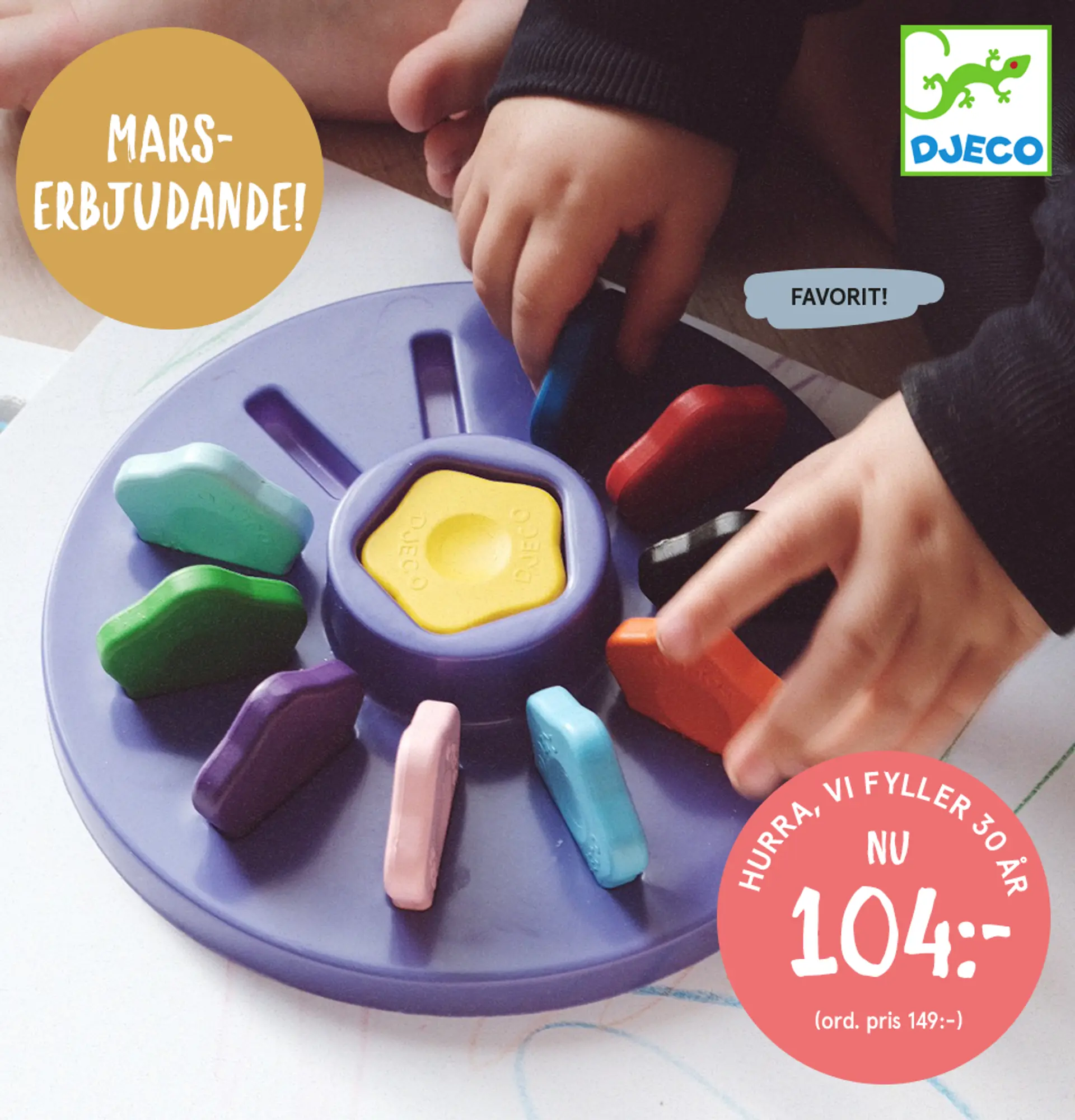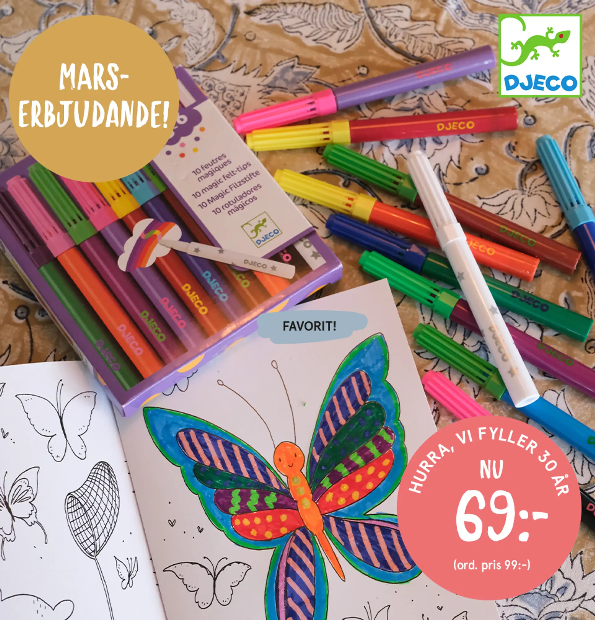 Vi fortsätter firandet och ger dig 30 % på rit- och målarsaker från Djeco.